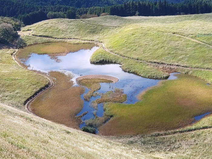先に済ませで亀山に向かいました、散策路はすすきとお亀池の景色