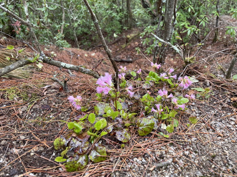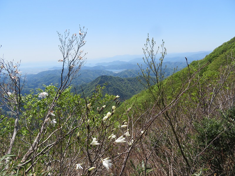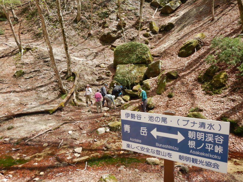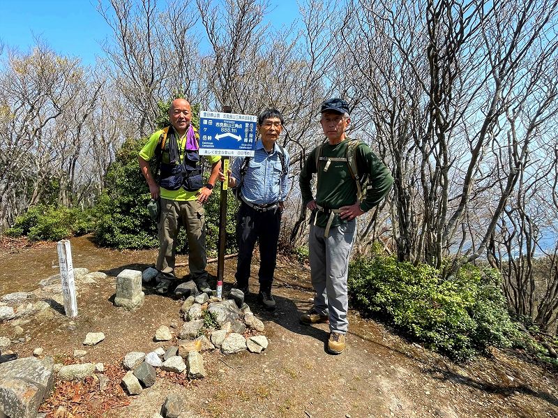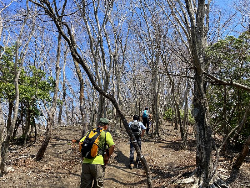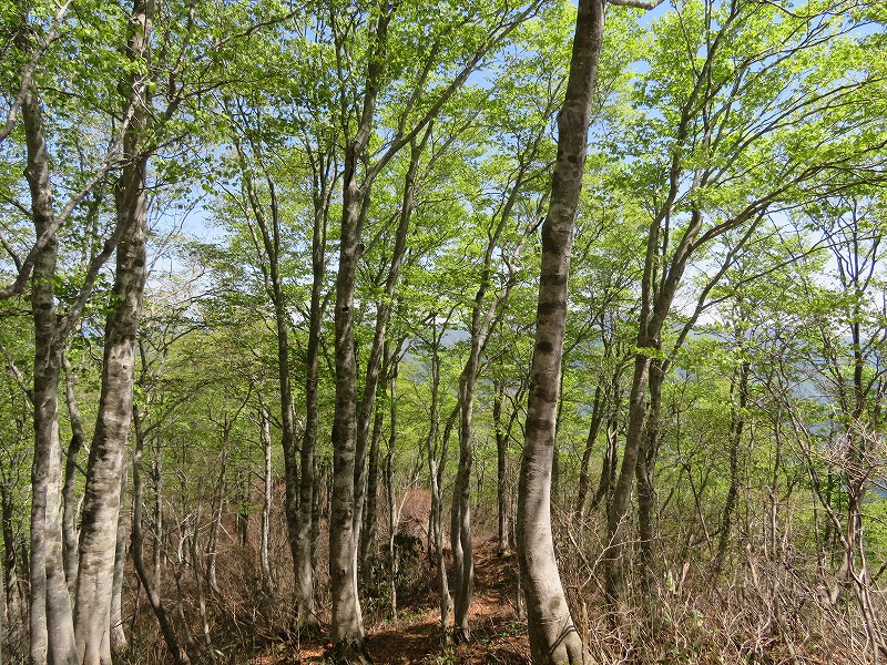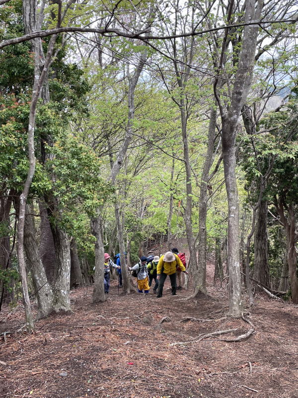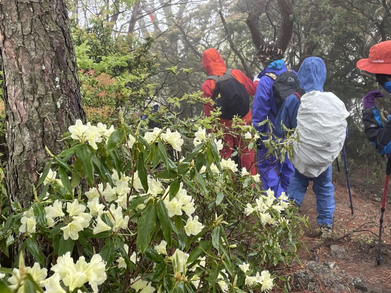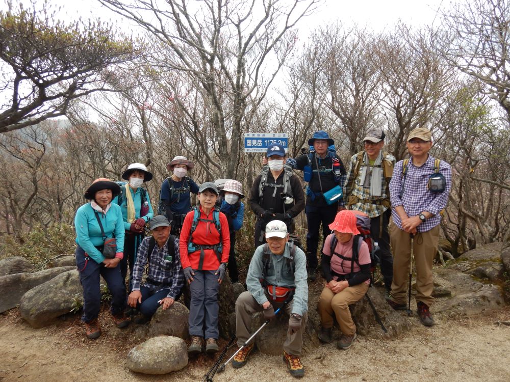 25日の天気、直前まで曇りと心配しましたが幸運にも快晴となりました。参加者26名でストレッチを済ませ目標のハライドのアカヤシオを期待して登山開始をしました。しかし、ハライドの頂上付近でも、はとんどのアカヤシオは散ってしまっていてがっかりしました。 ハライドからの急斜面の下りとヤシオ尾根への登りはかなりキツかったですが三点支持で慎重に下り、登りをしました。ヤシオ尾根では、所々にアカヤシオが咲いてました。 県境尾根に入った所で思わず目を見張りました。満開のアカヤシオが私たちを迎えてくれました。青空の中周り一体にアカヤシオ。国見岳の山の斜面一面にアカヤシオ。太陽にアカヤシオの花びらが輝き、山全体をピンク色に染めてました。諦めかけていた満開のアカヤシオを堪能し大満足でした。 その後国見岳で昼食を済ませ、キノコ岩、ブナ清水を経て無事下山しました。 下山後の感想は一ヶ月前の下見では山一面が冬景色で1,000M以上は雪に覆われてました。わずか一ヶ月後には春景色でアカヤシオや春リンドウが咲き誇り、日本の四季の素晴らしさを実感しました。また、8キロメートル、登り下りの標高差900M弱 、行動時間7時間を26名の参加者の方、元気に歩いていただき感謝しております。本当にありがとうございました。 |